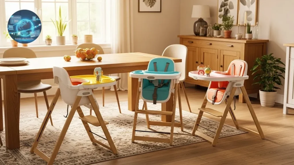 - Versatilidade: algumas cadeiras podem ser convertidas, acompanhando desde a fase de alimentação infantil até usos mais diversificados em ambientes familiares.