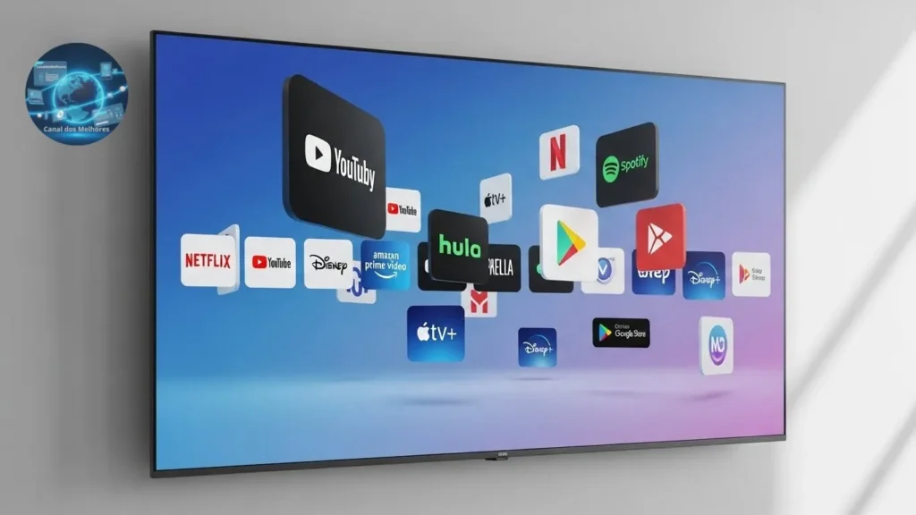 Outro recurso disponível em muitas Smart TVs é o acesso a aplicativos de streaming. Plataformas como Pluto TV, Tubi e até alguns apps das emissoras permitem que o usuário assista TV aberta sem a antena, desde que haja uma conexão estável com a internet. Essa abordagem oferece: