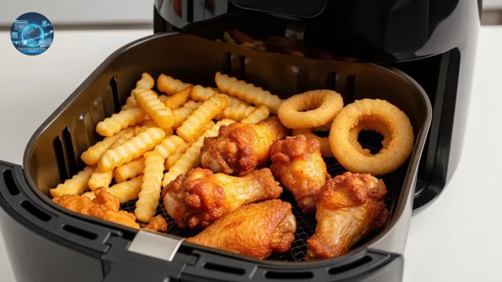 - Cortes Inteiros: Air fryers com maior capacidade permitem preparar peças maiores, como assados ou costelas, sem comprometer o espaço ou a distribuição de calor.